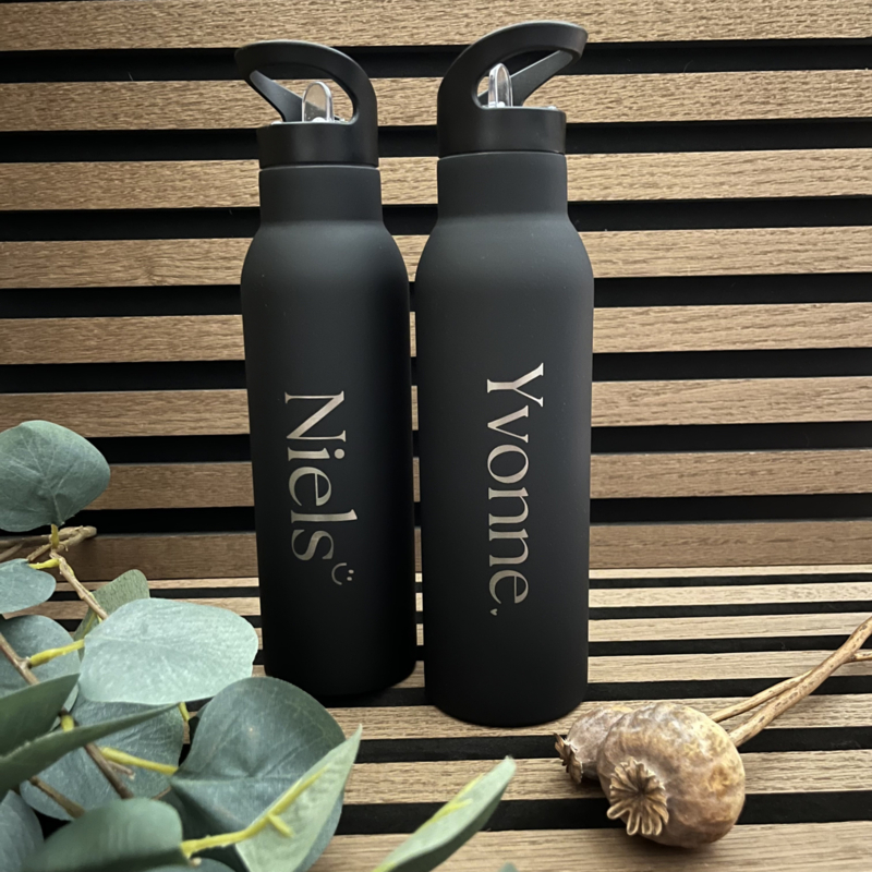 Fijne thermosfles 500 ml. met softcoating en rietje. Houd je drankjes koud of warm. Ideaal voor tijdens het sporten. Speciaal voor jou gepersonaliseerd met naam! Perfect voor een watertje, koffie, thee, of een verfrissend drankje. Een cadeau dat uniek is! In twee kleurtjes: Stijlvol Zwart of Retro Green, zo is er altijd eentje die bij jou past!