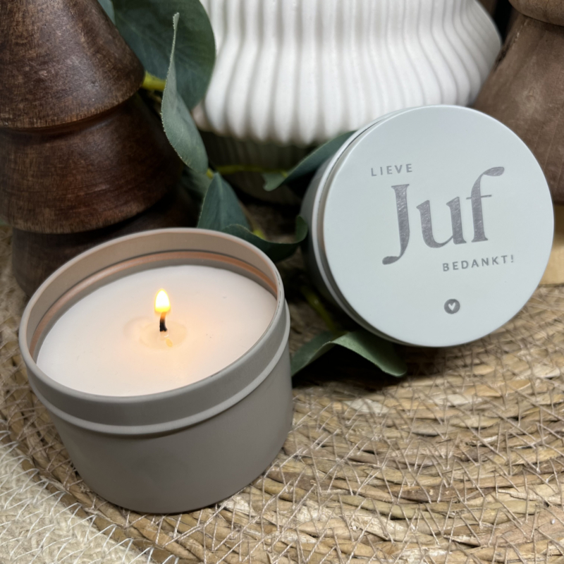 Op zoek naar een klein maar oh-zo-lief cadeautje voor de allerliefste juf? Dit schattige geurkaarsje in blik is een hartverwarmend bedankje dat zegt: juf, jij bent goud waard!