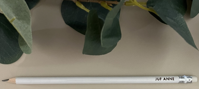 Jouw Juf verdient het allerbeste! En wat is er nu mooier dan een elegante, natuurlijke etui, in frisse vrolijke kleurtjes? Dit prachtige etui in een warme, natuurlijke tint is niet alleen super praktisch, ook nog eens gepersonaliseerd met haar naam!